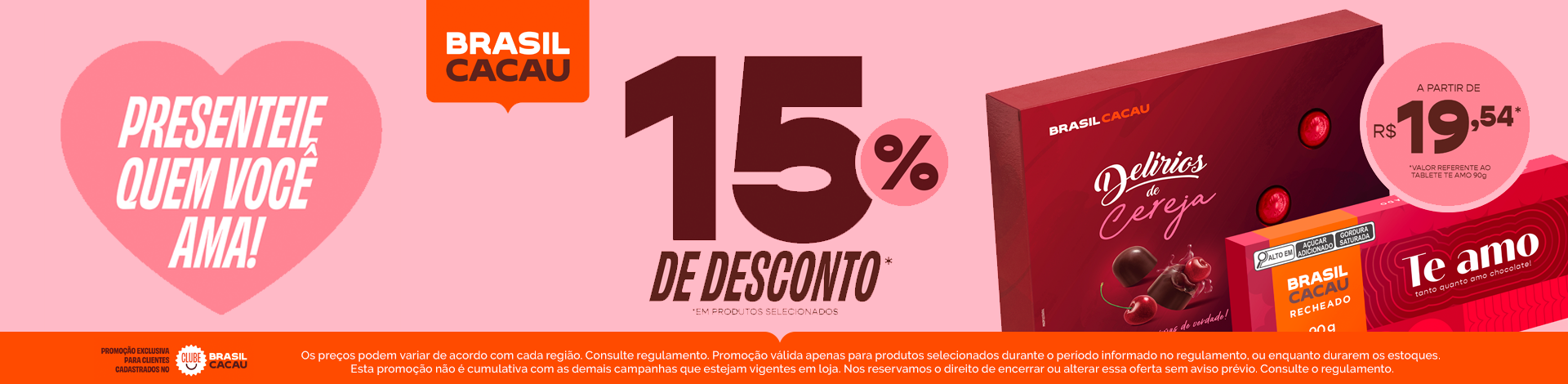 Presenteie quem você ama com um Cartão Presente Brasil Cacau! Com o Cartão Presente Brasil Cacau, seu presenteado pode escolher o que preferir em nosso site e optar por receber em casa ou retirar em loja. Escolha o valor para presentear, selecione seu Cartão Presente favorito e marque o dia de quem ama com Brasil Cacau.