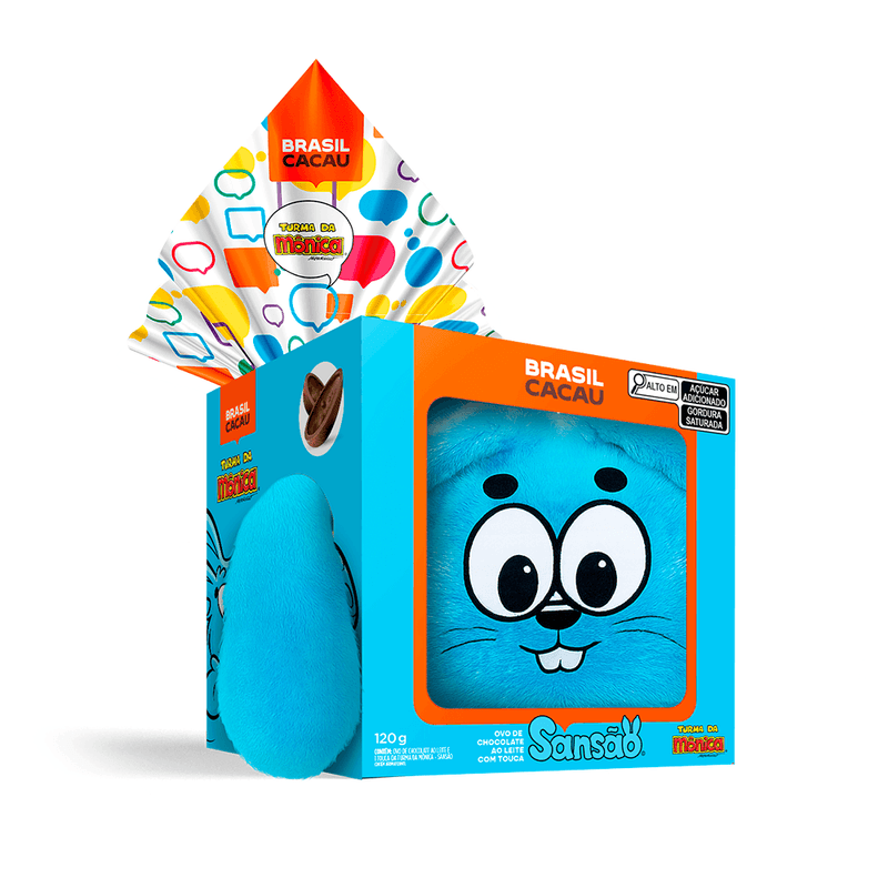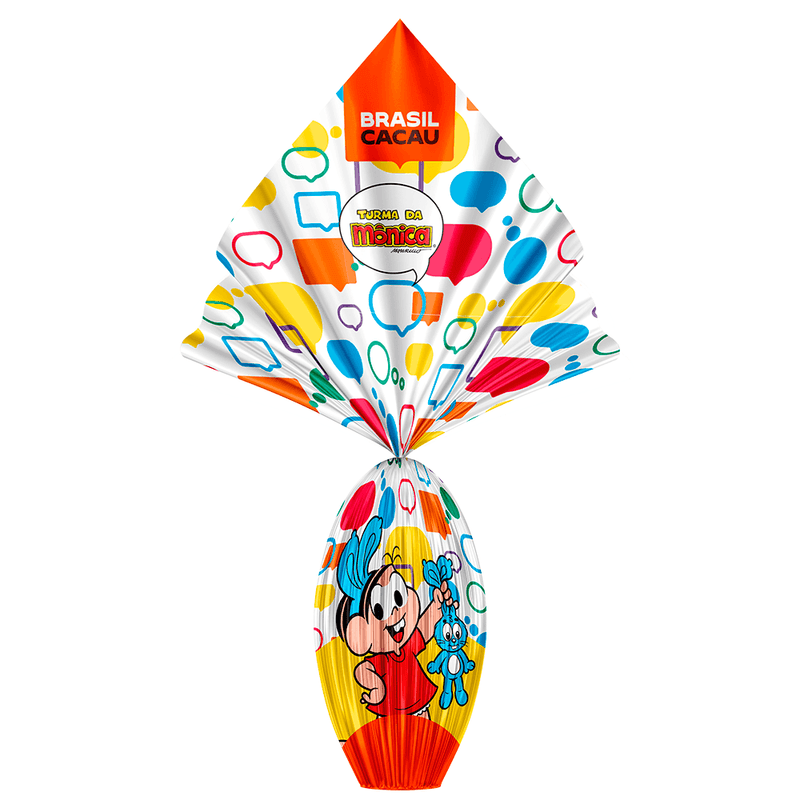 CONTÉM: Ovo de chocolate ao leite e 1 touca da Turma da Monica – Sansão.