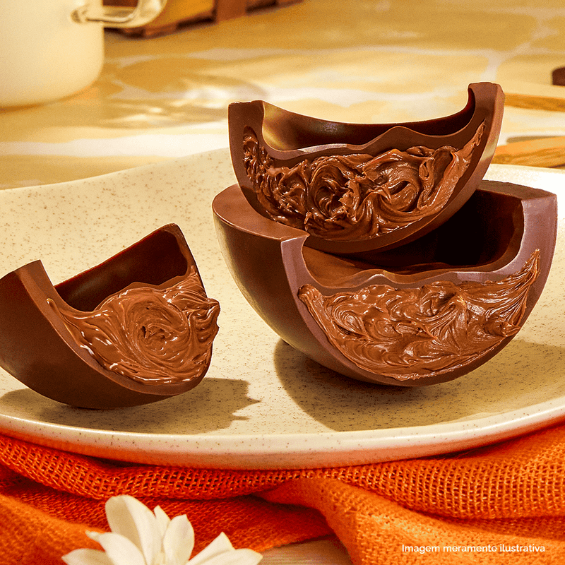 Ovo de chocolate ao leite com recheio de mousse de chocolate ao leite.