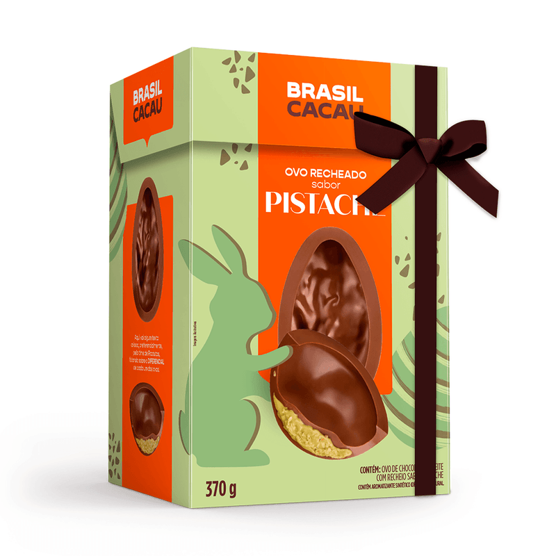 Ovo de chocolate ao leite com recheio cremoso de pistache.