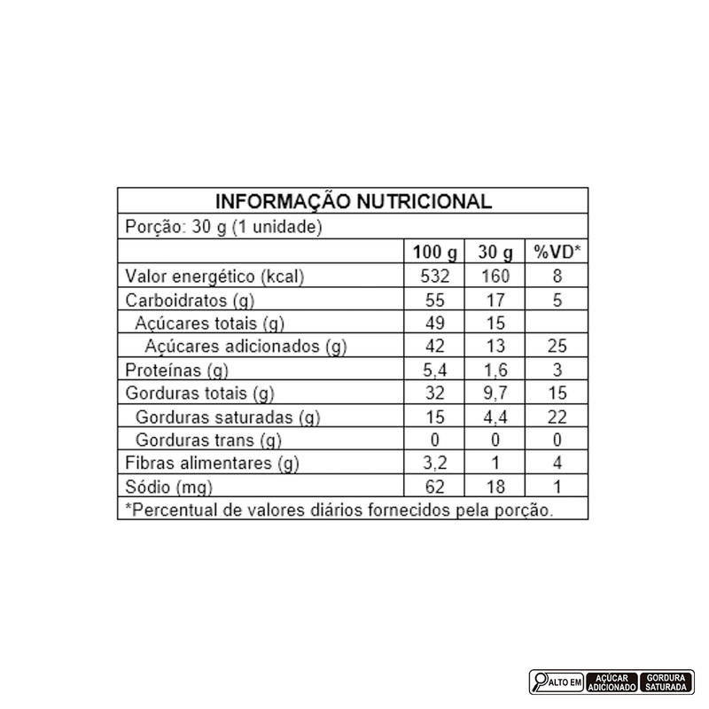 Ingredientes: açúcar, recheio crocante Ovomaltine® e avelãs (sacarose, óleo de canola, Ovomaltine® Suíço (extrato de cereal (cevada e malte), glucose, soro de leite em pó, cacau em pó, leite em pó integral, sal, mel, emulsificante lecitina de soja, antiumectante fosfato tricálcico, reguladores de acidez: bicarbonato de sódio e carbonato de sódio e aromatizante), Ovomaltine® Flocos Crocantes (açúcar, extrato de cereal (cevada e malte), glucose, cacau em pó, sal, canela, emulsificante lecitina de soja, antiumectante fosfato tricálcico, regulador de acidez carbonato de sódio e aromatizante), leite em pó desnatado, pasta de avelãs, cacau em pó, fosfato tricálcico, emulsificantes: lecitina de soja, mono e diglicerídeos de ácidos graxos e propilenoglicol, aromatizante e antioxidantes: palmitato de ascorbila e alfatocoferol), manteiga de cacau, leite em pó integral, gordura vegetal, pasta de cacau, soro de leite desmineralizado, cacau em pó, extrato de malte de cevada, creme de leite em pó, emulsificantes: lecitina de soja, triestearato de sorbitana e poliglicerol polirricinoleato e aromatizantes. ALÉRGICOS: CONTÉM CEVADA, AVELÃ E DERIVADOS DE CEVADA, LEITE E SOJA. PODE CONTER AMENDOIM, AMÊNDOAS, AVEIA, CASTANHA-DE-CAJU, CASTANHA-DO-BRASIL, CENTEIO, MACADÂMIA, NOZES, PISTACHE E TRIGO. CONTÉM LACTOSE. CONTÉM GLÚTEN.